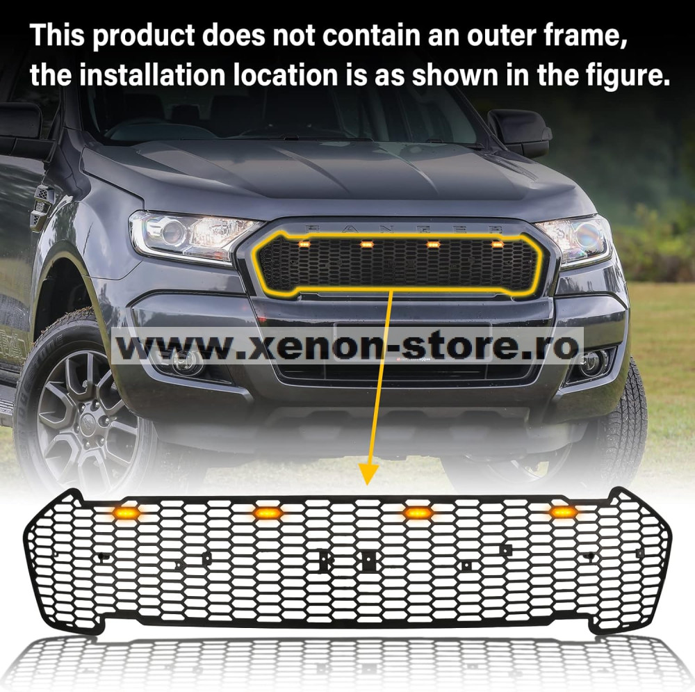 Grila radiator negru mat cu LED portocaliu Ford Ranger T8 2019-2022 - FGT81920 Black