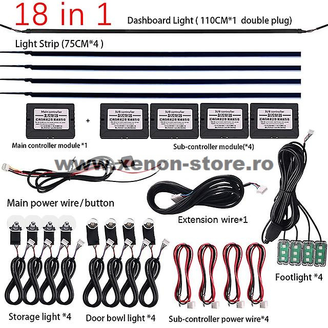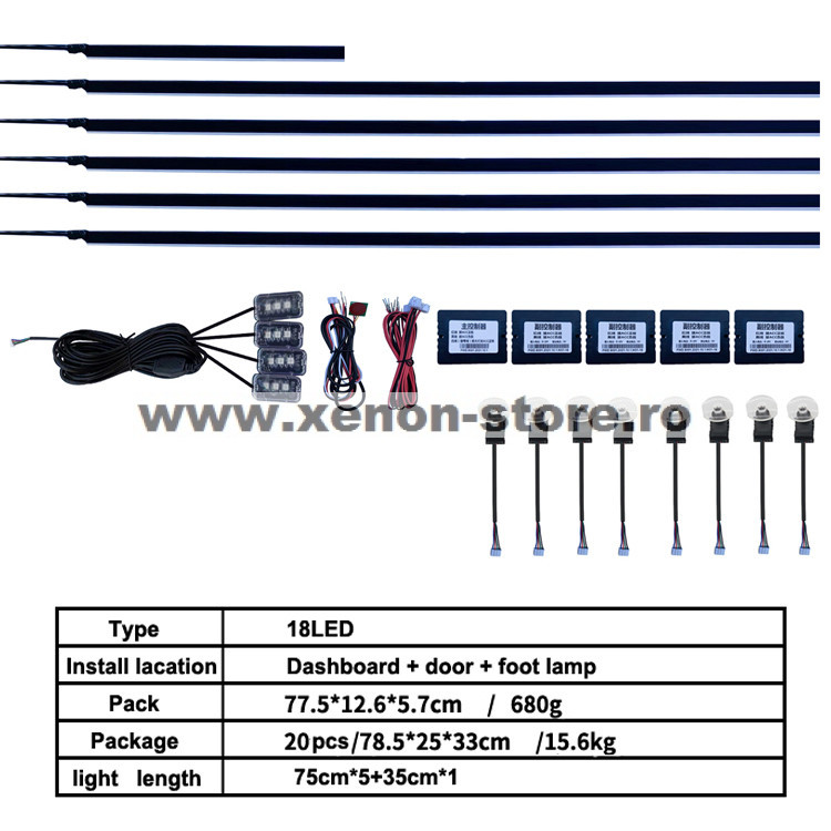 Kit lumini ambientale wireless cu LED, Acrilice 18 in 1 - Portiere, bord, manere cu banda fumurie - AMB03-SMOKE