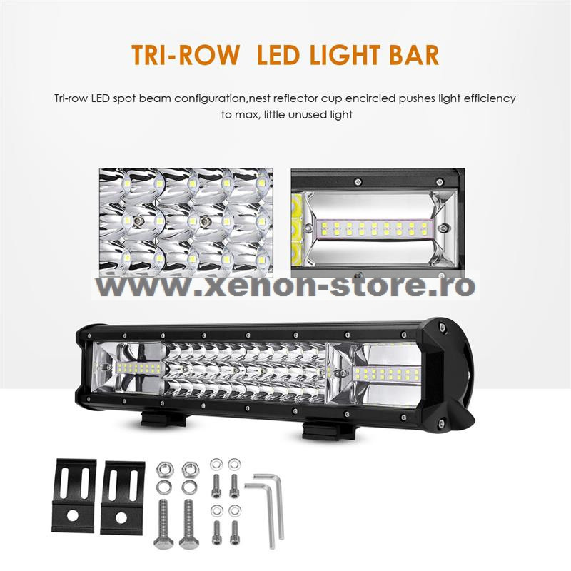Bara proiectoare LED Auto Offroad 270W, cu trei randuri de leduri, 12V-24V, 18900 Lumeni, 20"/50,8 cm, Combo Beam 12/60 Grade