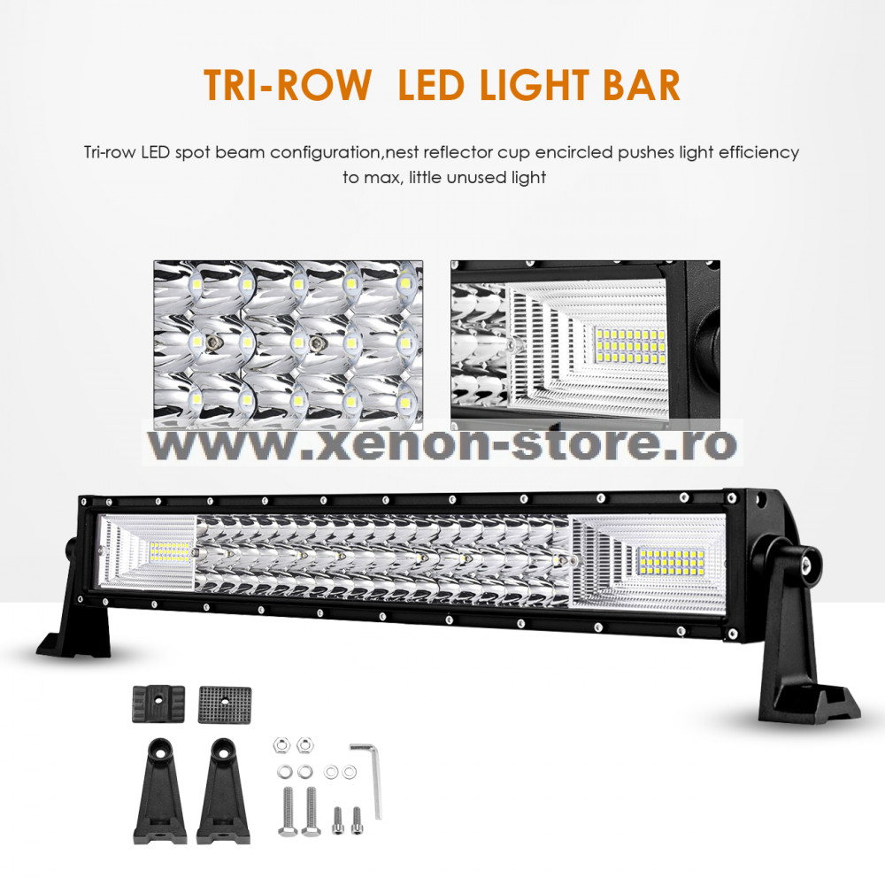Bara LED Auto Curbata 216W, cu trei randuri de leduri, 12V-24V, 15120 Lumeni, 13,5"/34,2 cm, Combo Beam 12/60 Grade