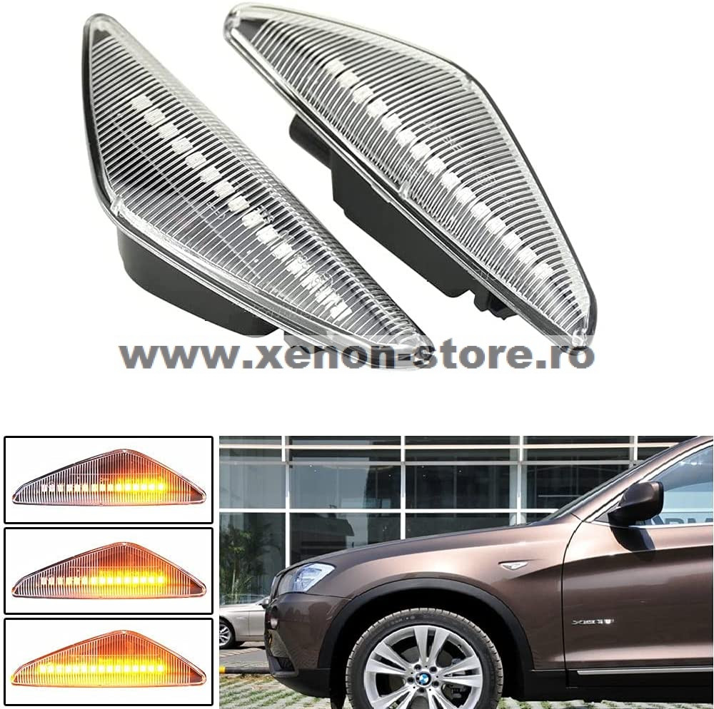 Set 2 Semnalizari Aripa LED dinamice, secventiale cu sticla clara pentru BMW X3 F25, X5 E70, X6 E71