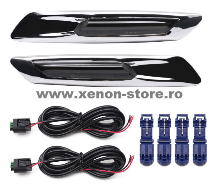 Set 2 Semnalizari Cromate Aripa BMW F10, F11, F07 Dinamice, Secventiale - V-17010536LG