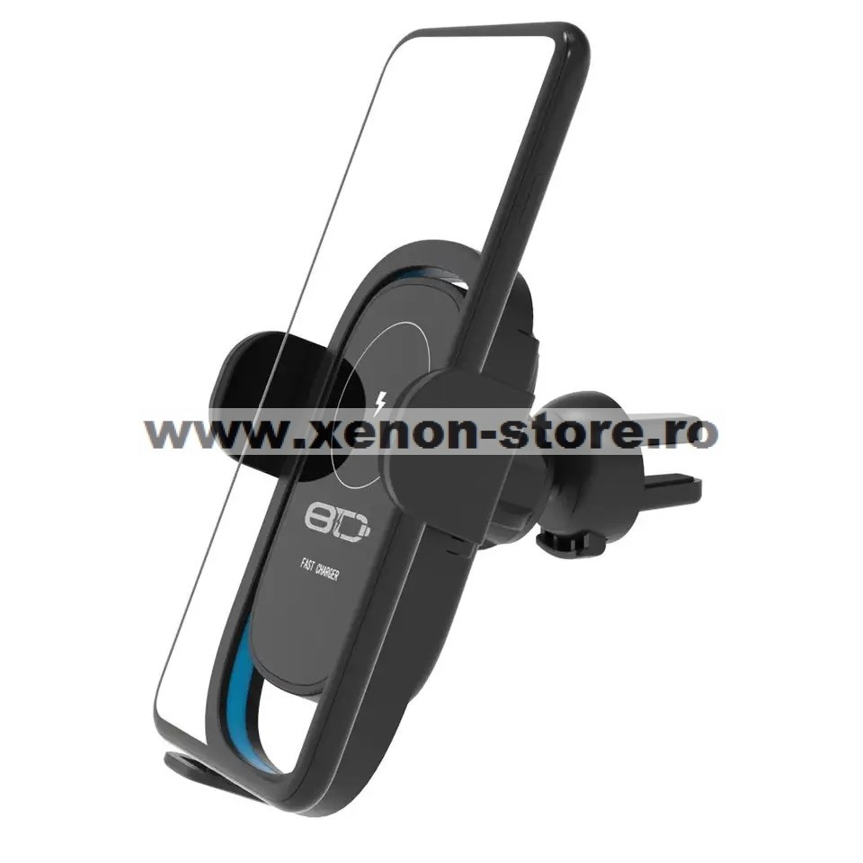 Suport auto pentru grila ventilatie + ventuza 15W motorizat (cu senzor) cu incarcare wireless Qi Standard Fast Charge Type-C