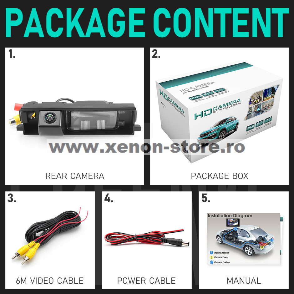 Compatibila doar cu unitatile aftermarket care au intrare video cu conector RCA. Nu este compatibila cu unitati care au intrarea pentru camera cu pini, va rugam sa verificati cu atentie unitatea masinii inainte de a comanda.