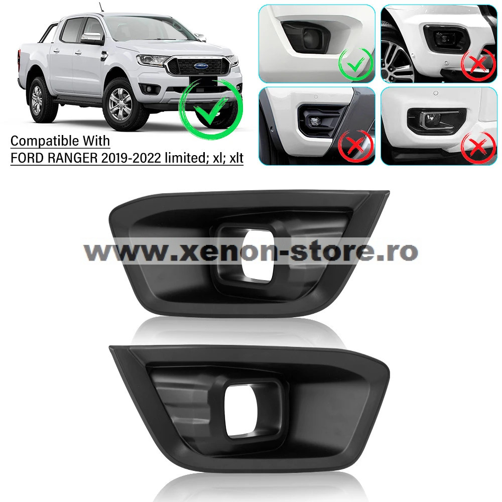 Set 2 Ornamente proiectoare ceata negru mat Ford Ranger T8 XL, XLT, Limited 2019-2022 - FLCT8X