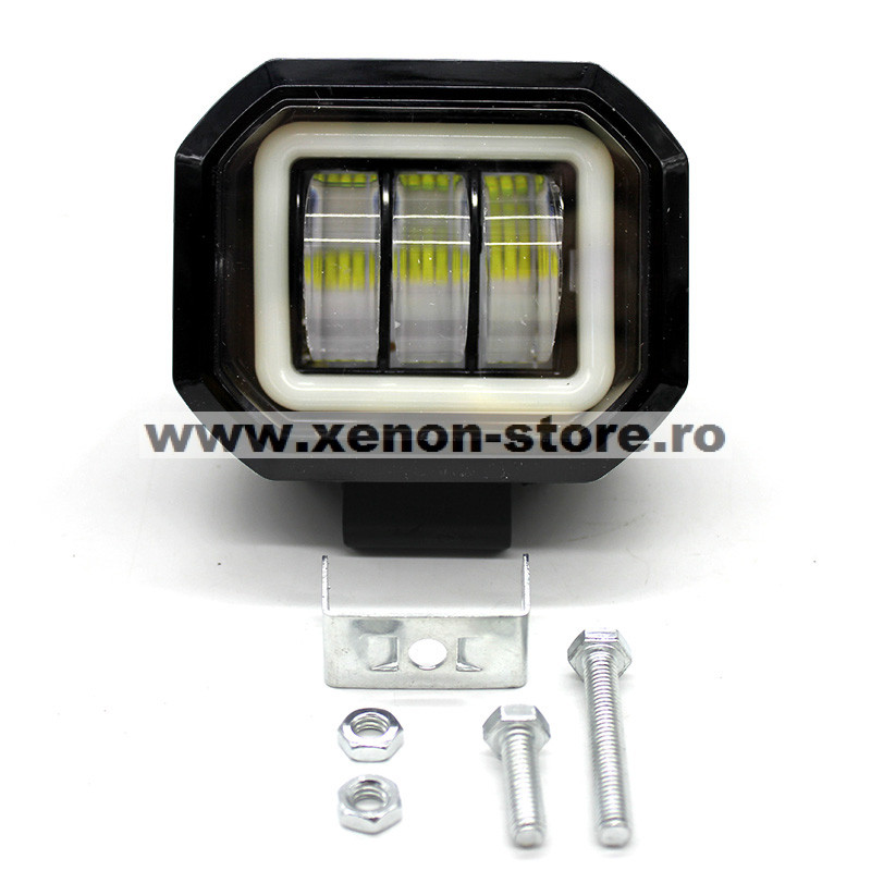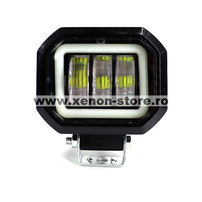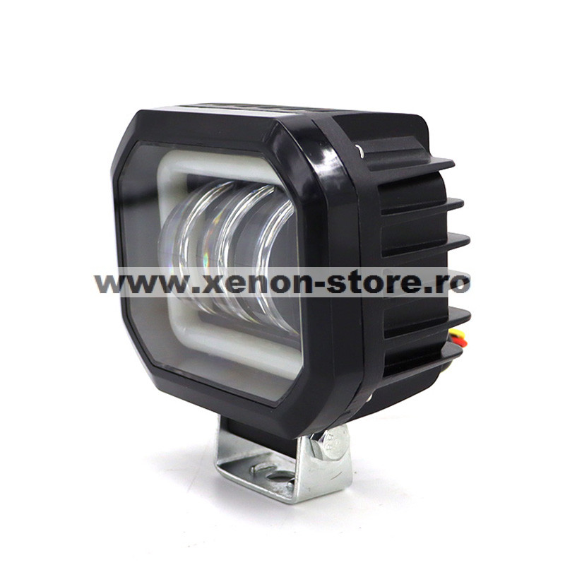 Proiector LED cu angel eyes pentru offroad auto, moto, atv, putere 30W, luminozitate 2700 lumeni
